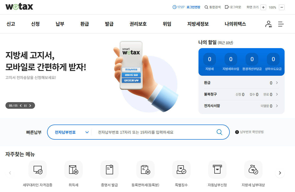 신청 방법: 1. 위택스(Wetax) 홈페이지 또는 모바일 앱 접속