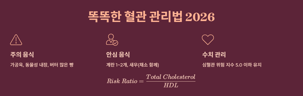 4. 결론: '무엇을 먹지 말까'보다 '무엇을 더 먹을까(식이섬유, 불포화지방)'를 고민하는 것이 2026년형 똑똑한 혈관 관리법입니다.