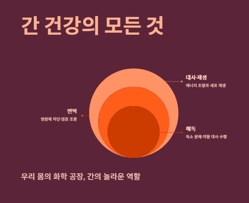 - 간의 역할: 해독, 면역, 대사 등 500가지 이상의 일을 수행하는 핵심 기관입니다.