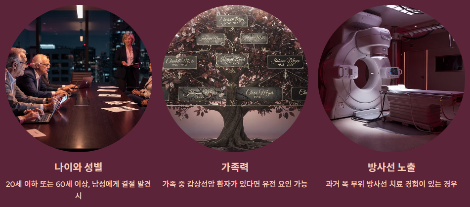 • 방사선 노출: 과거 목 부위에 방사선 치료를 받은 경험이 있다면 발생 위험이 높아집니다.