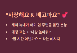 ① 보호자의 얼굴이나 입 주변: "사랑해요 & 배고파요"