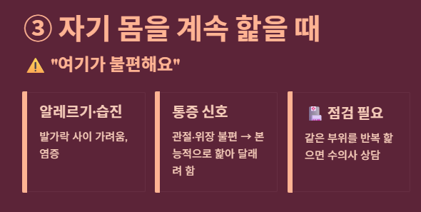 • 알레르기나 습진: 발가락 사이가 가렵거나 염증이 있을 때.