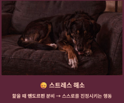 강아지는 핥을 때 뇌에서 엔도르핀이 분비됩니다. 지루하거나 불안할 때, 혹은 주변이 너무 시끄러울 때 스스로를 진정시키기 위해 무언가(주로 자신의 발이나 바닥)를 반복적으로 핥는 강박 행동을 보이기도 합니다.