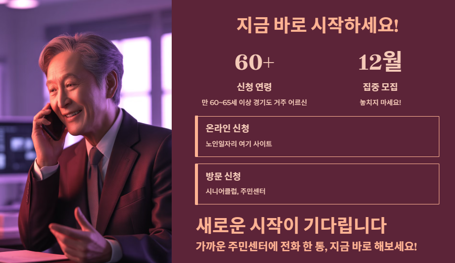 오늘은 경기도에 거주하시는 시니어 분들을 위해 2025년 경기도 노인 일자리 신청 방법과 꿀팁을 아주 쉽고 명확하게 정리해 드립니다. 이 글만 끝까지 읽으시면, 내년의 활기찬 아침이 달라질 거예요!