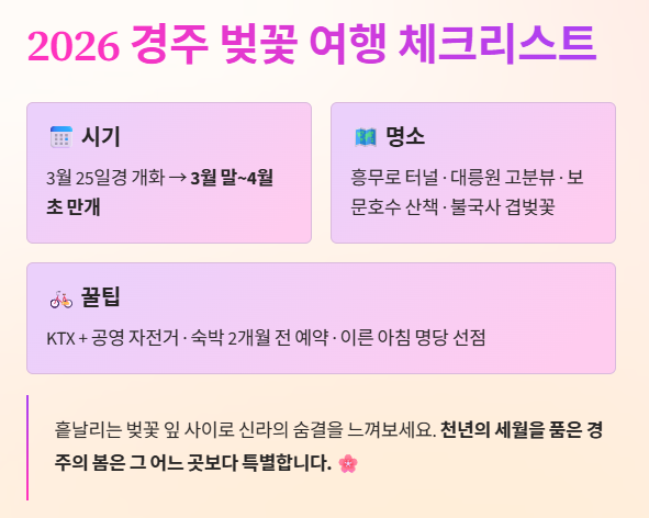 2026년 경주 벚꽃 여행 체크리스트!