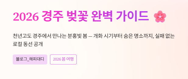 하지만 경주는 전국에서 인파가 가장 몰리는 곳인 만큼, 철저한 준비 없이는 '꽃 반 사람 반'인 상황에 당황하기 쉽습니다. 오늘 제가 2026년 경주 벚꽃 개화시기와 실패 없는 로컬 명소 동선을 완벽하게 가이드해 드릴게요!