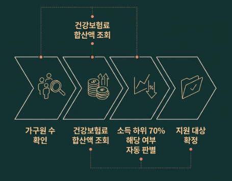 이번 지원금은 가구원 전체의 건강보험료 합산액을 기준으로 소득 하위 70%를 판별합니다.