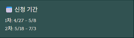| 1차 신청 | 4월 27일(월) ~ 5월 8일(금) | 기초생활수급자, 차상위계층, 한부모가족 |