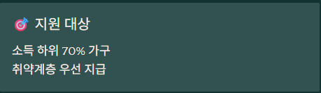 - 대상: 소득 하위 70% (취약계층 우선 지원)