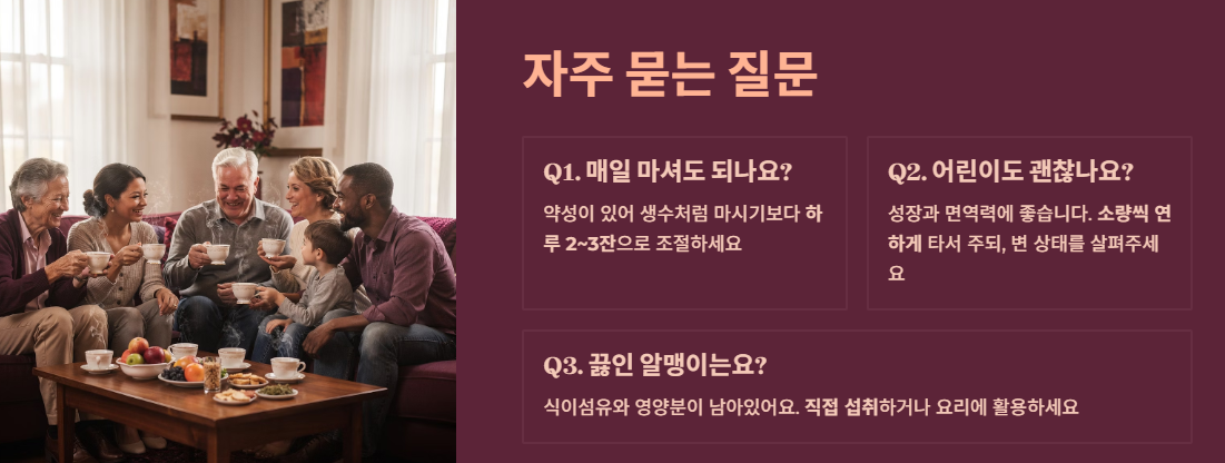 | 주의 대상 | 임산부, 저혈압/저혈당 환자, 소화력이 매우 약한 사람 |