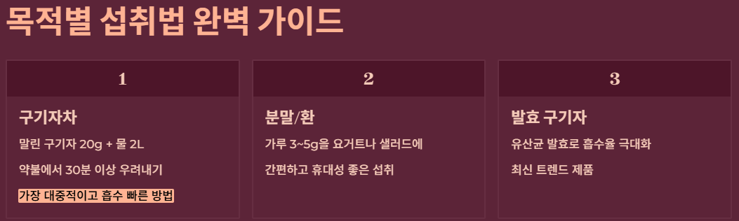 - 발효 구기자: 최근에는 유산균으로 발효해 흡수율을 높인 제품도 인기입니다.