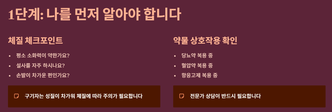 1단계: 나의 체질과 약물 복용 여부 확인