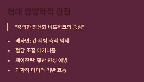 관점 2: 현대 영양학적 관점 "강력한 항산화 네트워크"