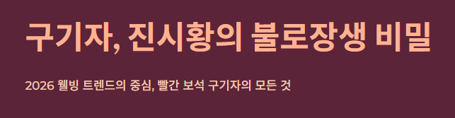"진시황이 불로장생을 위해 찾았던 비책 중 하나가 바로 우리 주변에 흔히 있는 열매였다는 사실, 알고 계셨나요?" 최근 2026년 웰빙 트렌드 속에서도 다시금 주목받는 슈퍼푸드가 있습니다. 바로 **'구기자(Goji Berry)'**입니다.