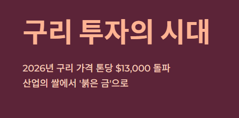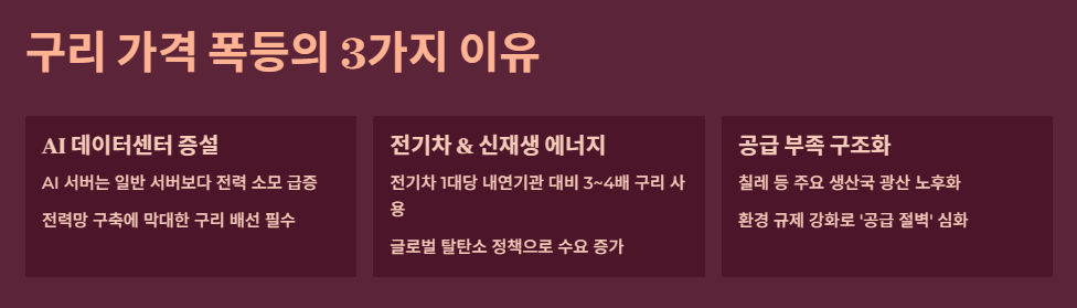 구리는 이제 단순한 금속이 아니라 **'에너지 안보'**와 **'AI 혁명'**의 핵심 부품입니다.
