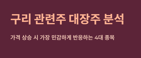 국내 증시에서 구리 가격 상승 시 가장 민감하게 반응하는 종목들을 정리했습니다.