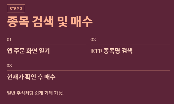 - 증권사 앱에서 종목명을 검색해 주식처럼 쉽게 살 수 있습니다.