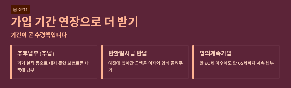연금액이 생각보다 적어 실망하셨나요? 수령액을 높이는 전략에는 두 가지 핵심 관점이 있습니다.