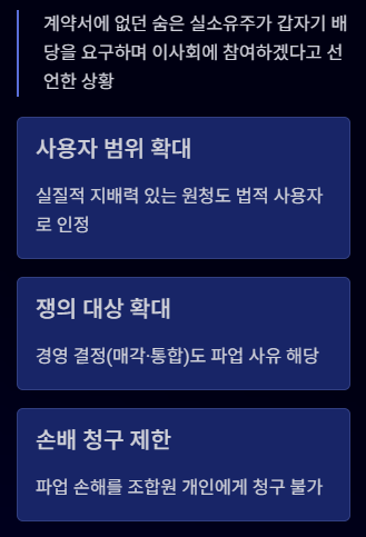 - 쟁의 대상 확대: 임금 외에 정리해고, 합병 등 경영권 결정 사항도 파업 가능 사유가 됨.