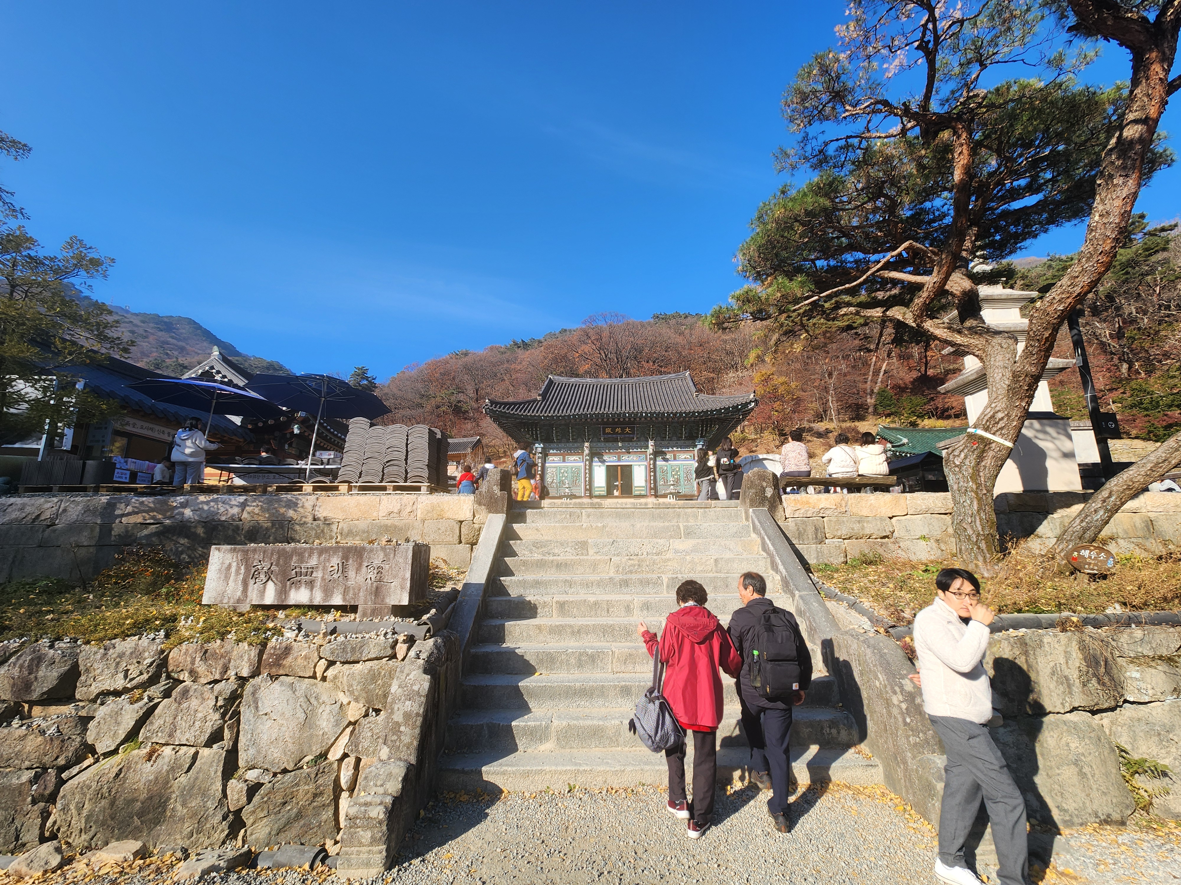 대웅전 앞마당을 거닐며 잠시 마음의 여유를 가져봅니다. 많은 인파 속에서도 산사 특유의 고즈넉함은 여전했습니다. 1,100년의 세월을 견딘 나무 아래서 가족의 건강과 남은 한 해의 평안을 잠시 빌어보았습니다.