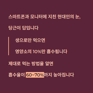 생당근의 흡수율은 10% 미만이지만, 익히면 30% 이상으로 올라갑니다.