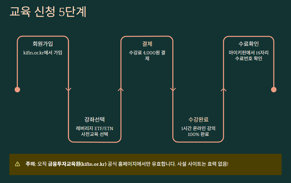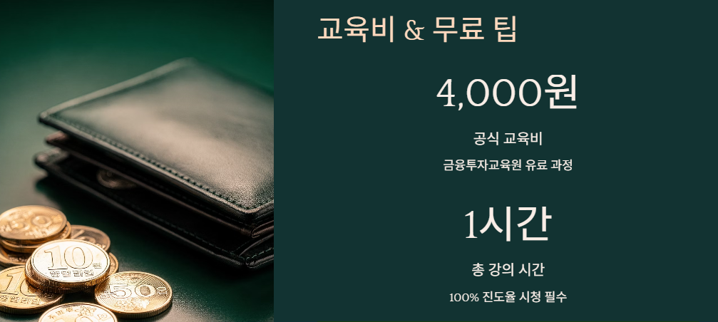 💡 무료로 들을 수 있나요? 아쉽게도 현재 금융투자교육원에서 제공하는 공식 레버리지 교육은 유료(4,000원)입니다. 다만, 일부 증권사에서 이벤트를 통해 교육비를 지원하거나 캐시백 해주는 경우가 있으니, 사용 중인 증권사 공지사항을 확인해 보세요.