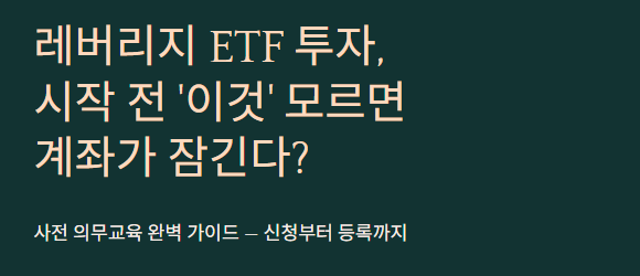 단순히 주식 계좌만 있다고 해서 모든 상품을 거래할 수 있는 것은 아닙니다. 특히 레버리지 ETF와 같은 파생형 상품은 개인 투자자의 자산 보호를 위해 '사전 의무 교육' 제도를 시행하고 있습니다. 오늘은 이 필수 교육을 어떻게 신청하고, 증권사에 등록하는지, 그리고 비용은 얼마인지 핵심만 쏙쏙 뽑아 정리해 드립니다.