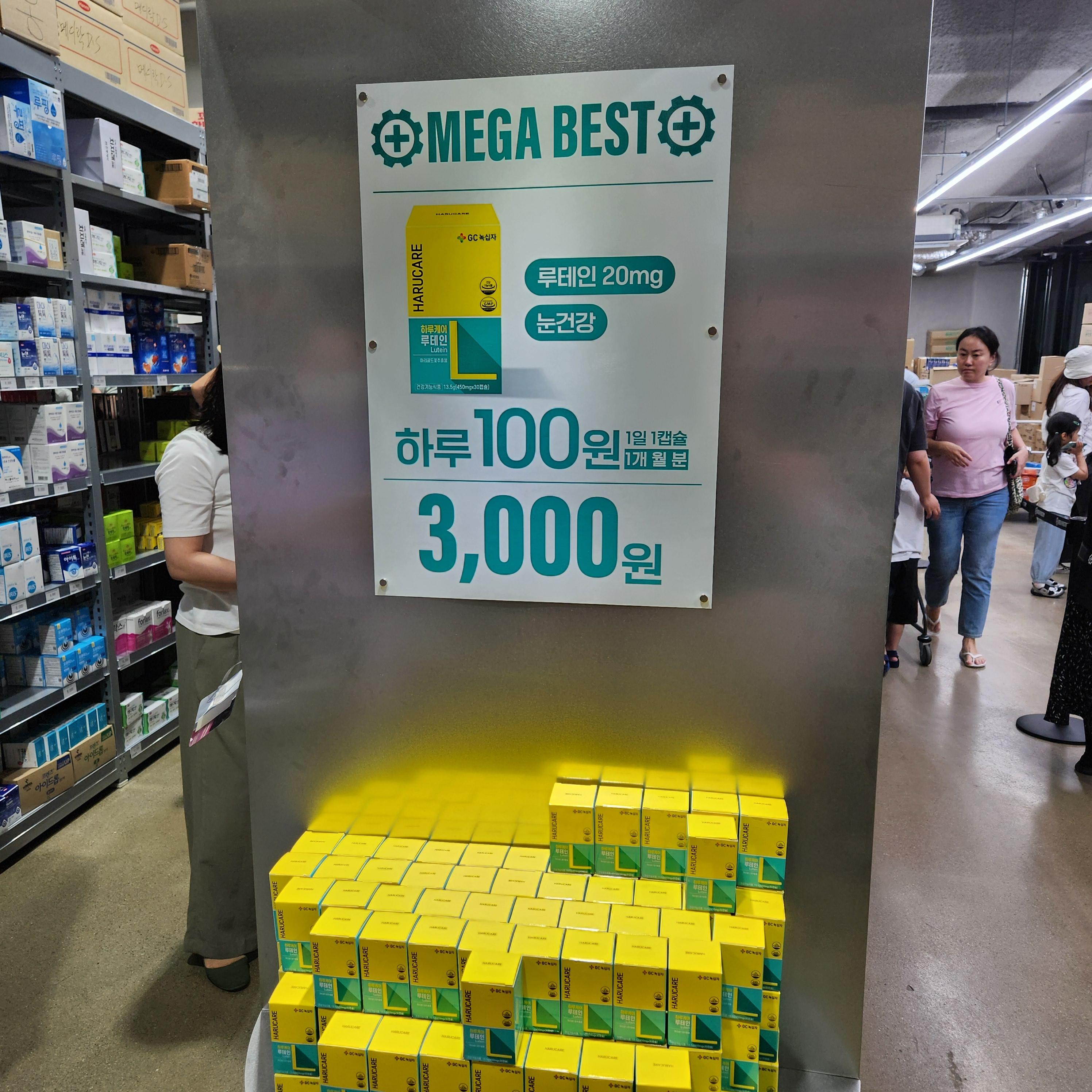 시중 약국에서는 볼 수 없는 특가 제품이나 행사제품들도 있습니다. 저는 최근 노안이 심해, 눈건강을 위한 루테인 약을 1개월치 3천원해서 총 3박스 구매했네요. ^^