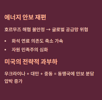 한국은 중동 정세에 매우 취약하면서도, 동시에 전략적 가치가 높아지는 기로에 서게 됩니다.