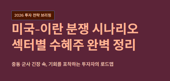 오늘은 미국-이란 분쟁 시나리오에 따른 수혜주와 테마주를 섹터별로 완벽하게 정리해 드립니다.