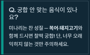 Q3. 미나리와 궁합이 안 맞는 음식이 있나요?