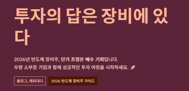 - 결론: 2026년은 반도체 장비 기업들에 '역대 최대 실적'을 안겨줄 해입니다. 단기 조정 시마다 우량 장비주를 매수하는 전략이 유효합니다.