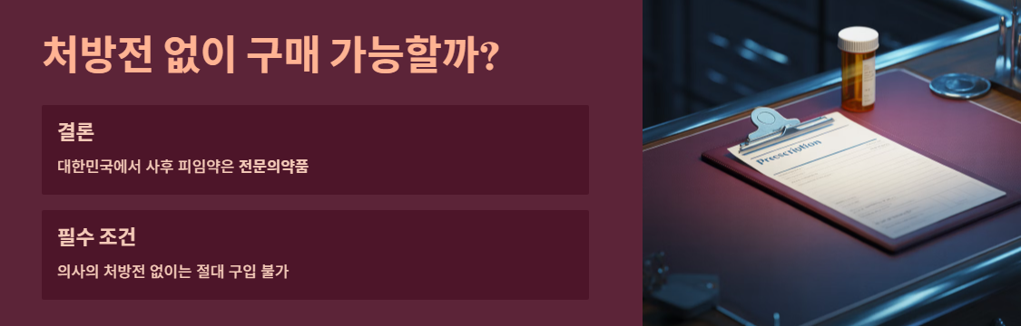 결론부터 말씀드리면, 현재 대한민국에서 **사후 피임약은 의사의 처방전 없이는 절대 구입할 수 없는 '전문의약품'**입니다.