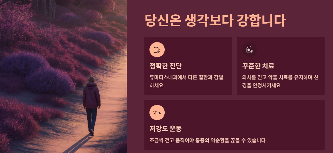 섬유근육통은 완치보다는 **'관리'**의 개념으로 접근해야 삶의 질을 높일 수 있습니다.