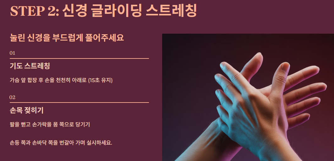 STEP 2: 신경 글라이딩 스트레칭 (수시로) 눌린 신경을 부드럽게 풀어주는 스트레칭입니다.