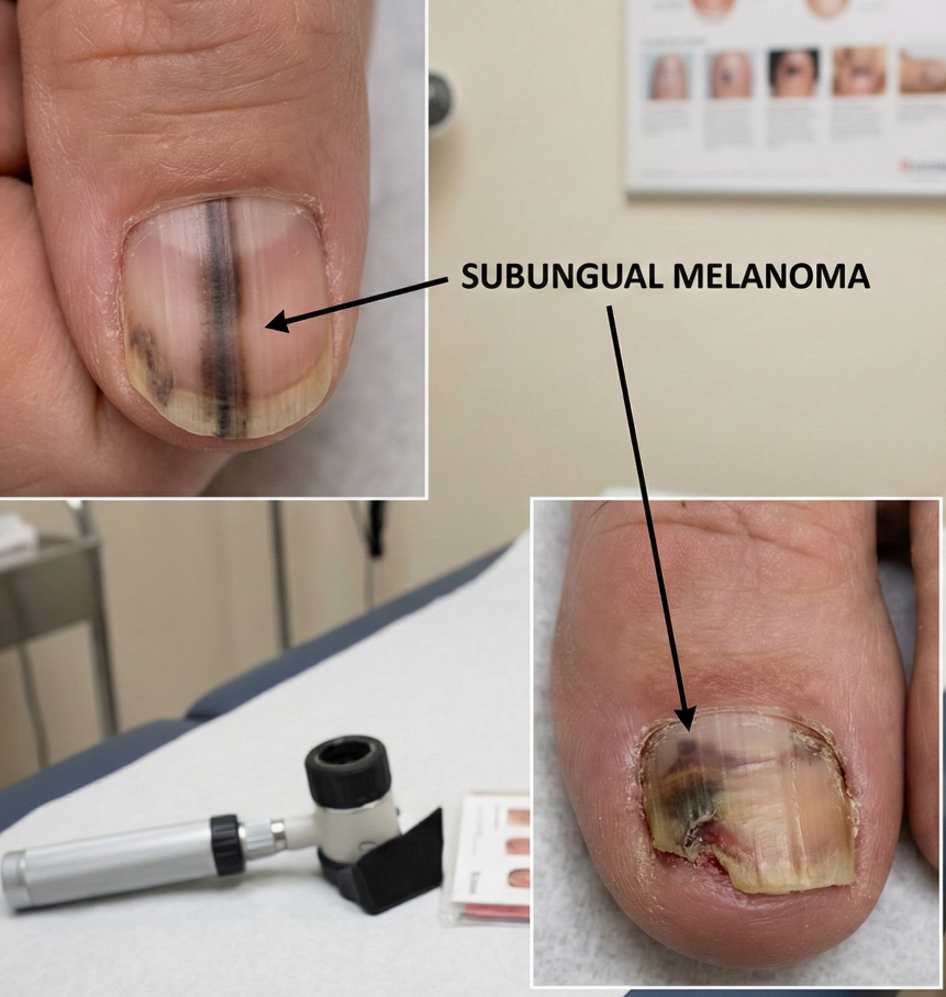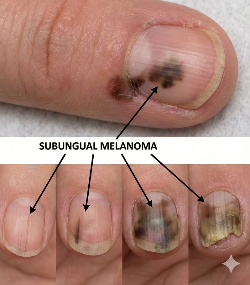 - 악성 흑색종: 가장 주의해야 할 경우로, 손톱 뿌리의 멜라닌 세포가 암세포로 변한 경우입니다.
