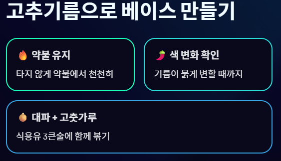 Step 1: 고추기름으로 베이스 만들기