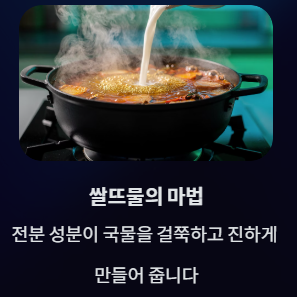 - 쌀뜨물의 마법: 맹물보다는 쌀뜨물을 사용해 보세요. 전분 성분이 국물을 걸쭉하고 진하게 만들어줍니다.