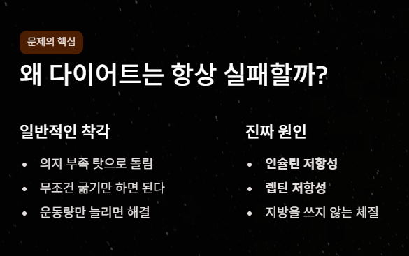 새해가 되면 누구나 '이번에는 진짜 살 뺀다!'라고 결심하지만, 작심삼일로 끝나기 일쑤죠? 적게 먹고 죽어라 운동해도 몸무게가 제자리라면, 그건 여러분의 의지 문제가 아닙니다. 바로 여러분의 몸이 **'지방을 쓰지 않는 몸'**으로 잠겨 있기 때문입니다.