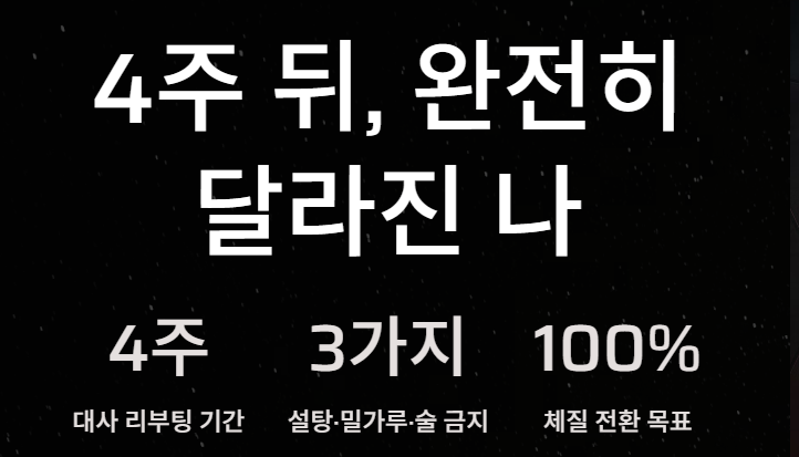 단순히 몸무게 숫자에 집착하기보다, 내 몸이 스스로 지방을 태울 수 있는 상태가 되었는지에 집중해 보세요. 4주 뒤, 여러분은 거울 속에서 완전히 달라진 자신을 만나게 될 것입니다.