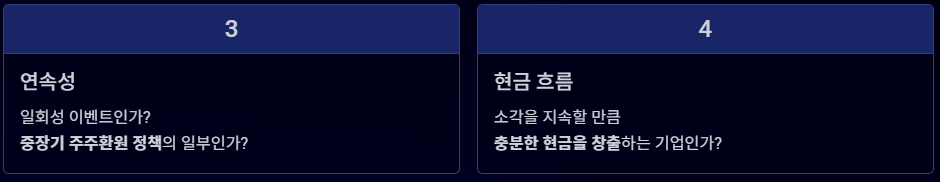 - 연속성 확인: 일회성 이벤트인가, 아니면 중장기적인 주주환원 정책의 일부인가?
