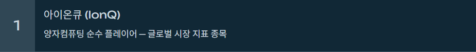 - 아이온큐(IonQ): 양자컴퓨팅 순수 플레이어(Pure Play)로 글로벌 시장의 지표가 되는 종목입니다.