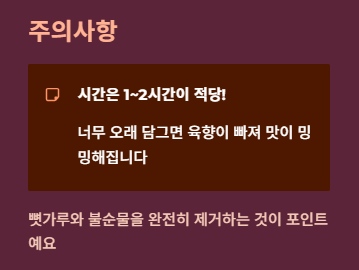 - 핏물은 2시간 이내로 빼서 육즙 보존하기.