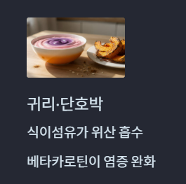 귀리는 산도가 낮고 식이섬유가 많아 위산을 흡수하는 역할을 합니다. 단호박은 베타카로틴이 풍부해 위장 기능을 강화하고 염증을 완화합니다.
