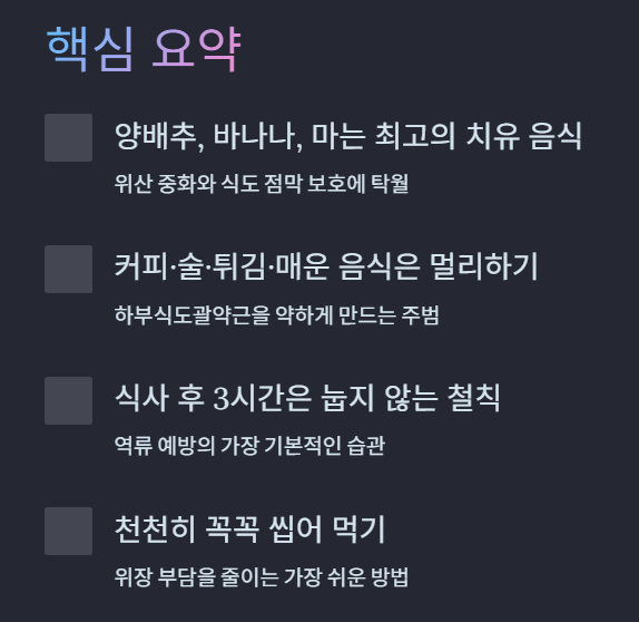 오늘 정보가 여러분의 편안한 속을 되찾는 데 도움이 되었나요? 건강한 식습관이 곧 최고의 명약입니다!