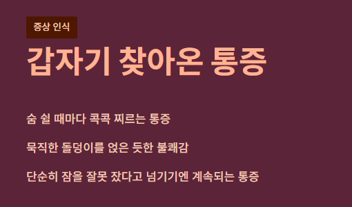 통증이 느껴질 때 당황하지 말고 다음 단계를 따라 해보세요.