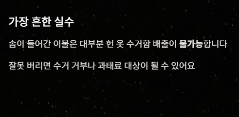 주의! 수거함 입구에 써진 '수거 품목'을 반드시 확인하세요. 솜이불을 무단 투척하면 업체에서 수거를 거부하여 단지 내 흉물이 될 수 있습니다.