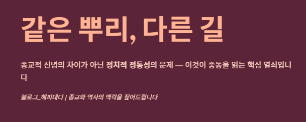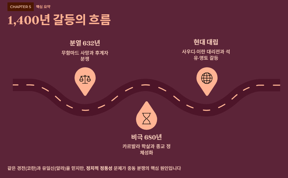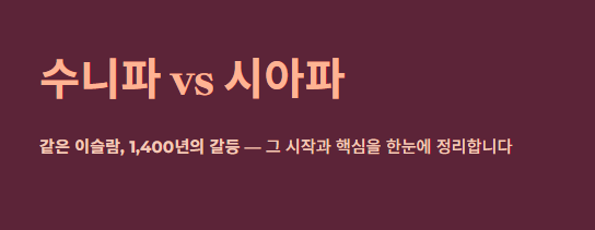 - 결론: 두 종파는 같은 경전(코란)과 유일신(알라)을 믿지만, 정치적 정통성 문제로 인해 현대 중동 분쟁의 가장 큰 원인이 되고 있습니다.