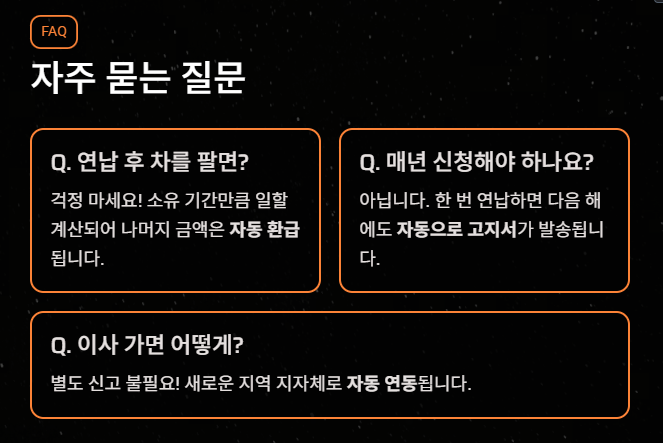 배기량이 큰 차나 여러 대를 보유한 경우, 한 번에 수십만 원이 나가는 게 부담될 수 있습니다. 이럴 땐 연납 할인은 포기하더라도 6월/12월 정기분에 맞춰 카드 무이자 할부를 활용해 가계 현금 흐름을 일정하게 유지하는 것이 합리적일 수 있습니다.