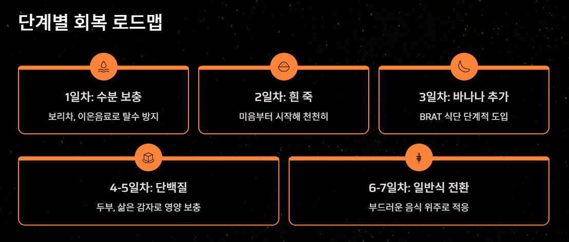 | 고당도/카페인 | 탄산음료, 커피 | 장내 삼투압을 높여 설사를 악화시키고 탈수를 유발함 |
